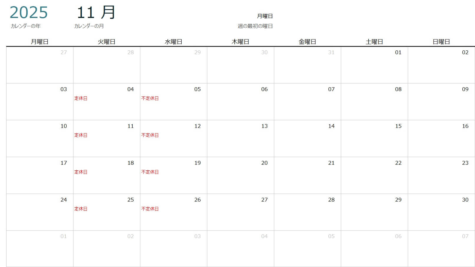 11月の営業日 2025.11.01 짹짹 몫 +1 Hatena 포켓 RSS 먹이 그것을 핀 気持ちの良い三連休から始まった11月。秋の味覚がいっそうおいしい季節となりました。 今月は、定休日の火曜日に加え、水曜日もお休みをいただきます。横浜散歩を楽しみながら、ぜひお立ち寄りください。 짹짹 몫 +1 Hatena 포켓 RSS 먹이 그것을 핀